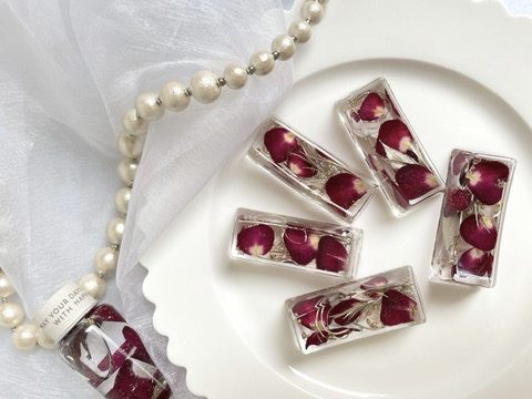 25本薔薇をもらったので、キャンドル3種を20個くらいを自作(沢山作って友人にプレゼントしました!)、薔薇のお箸置き(ハーバリウムタイプ)を依頼、残りは鑑賞用として飾った後に薔薇風呂にして楽しみました。笑